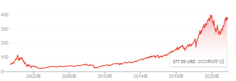 雑な株価チャート。ここ20年くらいの情報技術、技術革新を引っ張ってきたアメリカの企業が含まれるのでまあそうやろって感じ。現在の上位は、Apple、Microsoft、Amazon、Nvidia、META、GOOGLE、Broadcom、Tesla、adobeみたい。まあ全部使ってるよねっていう企業の顔ぶれ。基準、セクター割合などの議論は今回の議題ではないので雑に済ます。