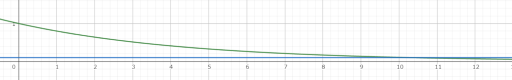 イメージ図を用意しました。青色の閾値を下回らなければ、0.5まで減らしたとしても1に向かって戻りだします。