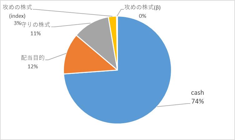 去年からの変化である。cashの20%を配当型と守りの株式に割り振りました。